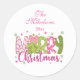 Sticker Rond Parties scintillant rose verte Joyeux Noël