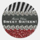 Cet autocollant fantaisiste présente des images de parties scintillant rouge, de strass et de rayures zébrées. Il est prévu pour un anniversaire de sweet sixteen, mais le modèle facile vous permet de le changer à n'importe quelle célébration, nom, ou n'importe quel texte que vous voulez. NOTEZ QUE TOUS LES ÉLÉMENTS SONT DES EFFETS IMPRIMÉS — IL N'Y A PAS DE PARTIES SCINTILLANT RÉELLE, ETC.