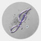 Sticker Rond Parties scintillant violet et argenté Fancy Script