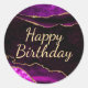 Sticker Rond Parties scintillant violet et or Agate Joyeux anni