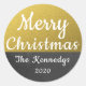 Joints élégants et à la mode d'enveloppe de Noël de parties scintillantes d'or. Personnalisez avec le nom de famille et l'année.