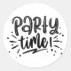 Sticker Rond Party Time! Fun Black & White Hand-Lettered Script
