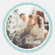 Répandez la joie de Noël avec cet autocollant de Noël classique qui respire l'élégance et la chaleur, avec un motif de Noël blanc et bleu-vert doux qui donne un ton serein et festif. Ajoutez votre photo préférée pour personnaliser ces adorables ajouts à vos cadeaux et lettres.