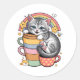 Appréciez le charme des "Pastel Paws & Rainbow Sips", Sticker rond, un design délicieux avec un adorable chaton gris niché au milieu d'une pile de tasses colorées, le tout face à un arc-en-ciel pastel doux. Cette illustration fantaisiste saisit l'essence de la culture kawaii, alliant des tons pastel apaisants à des éléments ludiques comme des étoiles souriantes et des abeilles bourdonnantes.