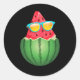 Sticker Rond Pastèque cool avec lunettes de soleil été