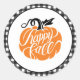 Ces autocollants de style ferme présentent un design citrouille avec les mots "Happy Fall". A l'extérieur se trouve un motif tout de noir et blanc en vichy.