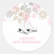 Sticker Rond Patinage sur glace Anniversaire Pink Gold Snowflak