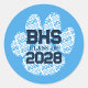 Initiales de l'école Bleu bébé clair, Blanc & Marine Class of ANY Année de fin d'études Pawprint Autocollants Ronds Classiques