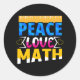 L'autocollant Math ajoute une touche gaie aux livres scolaires, aux sacs de livres et à d'autres applications liées à l'école. Le design comporte les mots "Paix, Amour, Math" en lettres colorées.