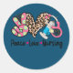 Sticker Rond Peace Love Nursing Stethoscope Leopard Cute Nurse