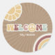 Sticker Rond Peace Super Welcome Baby shower Brown rose Hippie