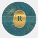 Sticker Rond Peacock monogramme Turquoise avec Gold Round