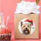Design de Noël coloré et joyeux avec un Cairn Terrier portant un chapeau de Père Noël.