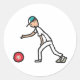 La conception des bols de la Couronne Green ou de la pelouse montre un bowler en tenue de bowling et un casquette qui lâche un bol vers la prise. Le jack n'est pas montré parce qu'il est à des kilomètres. A un pied sur le tapis, une position raisonnable et le bol sera vrai à moins qu'il ne soit l'un de ces rusés déséquilibrés.