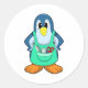 Sticker Rond Penguin coiffeur avec ciseaux et razor