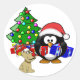 Sticker Rond Penguin Père Noël et Reindeer Chien