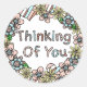 Fleurs dessinées à la main rose et bleue et pensant à vous autocollants pour mettre sur les cartes et enveloppes.