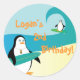 Sticker Rond Pepe Surfer Penguin Petit chevalet d'anniversaire