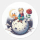 Este Adesivo apresenta uma linda ilustração do Pequeno Príncipe sentado na lua, acompanhado por sua fiel raposa e a delicada rosa. Cada detalhe foi cuidadosamente desenhado para capturar a essência da amizade, da inocência e da curiosidade que tornam essa história tão especial.