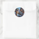 Perché sur le mât Blue White Raven Classic Round Sticker (Edit) Heureux de vivre en Alaska et de voir cet oiseau de prophétie
