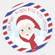 Emballez votre envoi ou votre cadeau de Noël avec un joli sceau rond qui présente les bordures d'une enveloppe « air mail » en bleu foncé et rouge. Il comporte une illustration du Père Noël avec une écharpe confortable et un chapeau d'hiver. Le Père Noël aime utiliser la poste. C'est un peu un vieux garçon à l'ancienne ! Le texte personnalisable total indique AIR MAIL NORTH POLE POST OFFICE
