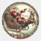 Sticker Rond Père Noël en traîneau et rennes