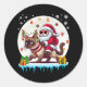 Sticker Rond Père Noël Riding Reindeer Siamese Chat Noël Propri