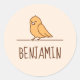 Illustration simple d'un mignon oiseau de perruche de dessin animé assis avec ses ailes fermées. Customisez avec le nom de votre enfant.