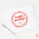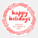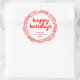 Sticker Rond Personalized Happy Holidays Wreath Red and White