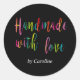 Coloré manuscrit "Main faite avec amour" texte sur un arrière - plan noir. Personnalisez-le avec votre propre nom en cliquant sur le bouton personnaliser.