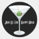 Personnalisé Rejoignez-Nous Pour Happy Hour Party Black Sticker. Verre Martini à la vodka ou au gin et un olive verte sur arrière - plan noir et blanc. Cocktails, Happy Hour, C'est 5 O'Clock Quelque part. Idéal pour les invitations, enveloppes ou réunions.