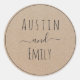 Découvrez ces mignons autocollants modernes pour votre mariage. Ils disposent d'un arrière - plan en papier Kraft rustique, d'un script mignon et de noms personnalisables pour que la mariée et le marié ajoutent leur propre nom. Customisez le texte comme vous voulez pour correspondre à votre vibe mariage. Parfait pour tous les mariages ont besoin de produits tels que des autocollants de remerciement, des scellés d'enveloppe...