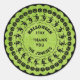 Personnalisez avec votre propre texte. Il y a des modèles séparés fournis pour le, "Happy Halloween", l'année, "Merci", et le nom. Une façon unique de dire merci d'être venu à votre événement spécial. La forme ronde a des cercles de sorcières et Jack-o-lanternes, tous deux à partir de polices d'image. Les images vectorielles noires simples sont répétées en cercles dans un cadre de pétoncles sur un arrière - plan texturé vert citron pour un motif de vacances en imprimé amusant.