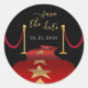 Personnalisez Red Carpet Thématique Party Save the Date Classic Round Sticker - L'enveloppe parfaite pour inviter les invités à votre événement royal.