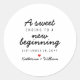 Les jeunes mariés ! utilisez ces stickers "Une fin douce à un nouveau départ" sur les faveurs de mariage pour vos invités. le design est un mélange de type moderne et lettré à la main et un petit coeur mignon. Personnalisez la conception en changeant les noms et la date. Des produits de coordination tels que sacs de faveur, étiquettes de vin, etc sont également disponibles dans notre magasin.