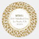 Ronde 1/5" autocollants d'adresse de retour avec pétales abstraits de fleurs d'or, éclats d'or et anneaux autour du nom et de l'adresse.