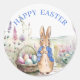 Pierre le lapin avec un arrière - plan fleur sauvage et un accueil de Pâques heureux