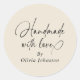 Autocollant Rond Classique Écru Petit Commerce Écriture Main Fait Avec Amour