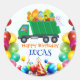 Sticker Rond Petit Dinosaur camion à ordures ballon d'anniversa