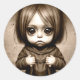 Sticker Rond Petit enfant effrayant avec les grands yeux Chibi