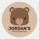 Sticker Rond Petit ours Brown mignon avec nom personnalisé