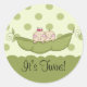 Mignonette It's Twins Baby autocollant avec un Sweet Little Pea Pod avec un bébé jumelles sur un arrière - plan vert pois. Un autocollant parfait pour les faveurs pour bébés ou les enveloppes d'invitation phoques & annonces de naissance jumeaux! Des invitations jumelles, des timbres-poste et des notes de remerciement sont disponibles dans notre boutique à www.celebrateitinvites.com. ©Jessica Weible