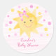 Sticker Rond Petit rayon de soleil Baby shower jaune rose