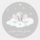 Ajoutez une touche personnelle à votre décor de fête de baby shower avec ces autocollants personnalisés. Parfait pour honorer la maman d'être avec un baby shower à thème Little Peanut. L'éléphant aquarelle, les lumières scintillantes et l'arrière - plan gris doux font l'addition parfaite à tout baby shower neutre pour les sexes. Coordination de la décoration des baby showers d'éléphants, des invitations et de la vaisselle dans la boutique.
