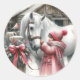 Des autocollants de Noël. Ai aquarelle illustration d'une scène sur une ferme rustique avec une petite fille sucrée entassée dans un manteau d'hiver rose prenant soin de son joli cheval blanc pendant un jour de Noël enneigé.