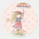 Sticker Rond Petite fille Whimsical et chaton sous la pluie