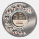 Le téléphone rotatif de style vintage rappelle le bon vieux temps où il a fallu éternellement composer un numéro à l'aide de vos doigts et tourner les numéros autour du cadran. Un grand souvenir des années soixante, soixante-dix et quatre-vingts. Aspect métallique gris foncé avec le centre du téléphone marqué avec les anciens numéros pour la police, incendie, ambulance et opérateur, avec script "téléphone rotatif". Gris foncé et marron avec des chiffres rouges. Tous les droits de reproduction © www.CuteComfy.com
