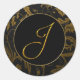 Sticker Rond Phoque Monogram J Gold et Black Mariage damassé