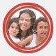 Stickers simples Photo Classic Round de Noël personnalisables avec rouge et or.