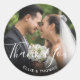 Personnalisez avec votre propre photo et personnalisez avec vos noms en texte blanc classique et merci en écriture élégante pour créer votre propre autocollant de remerciement unique. Conçu par Thisisnotme©